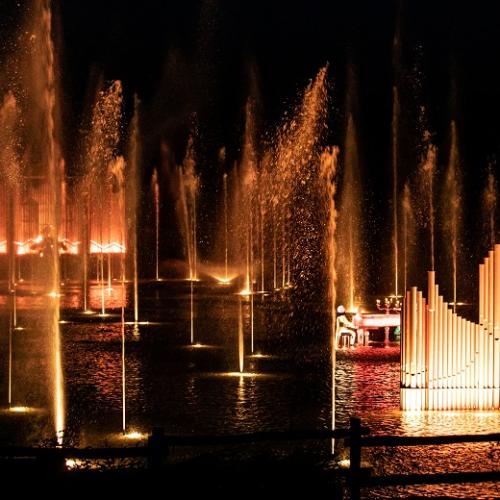 Les Noces de Feu est un spectacle nocturne mêlant l’eau et le feu, la musique et la danse ;